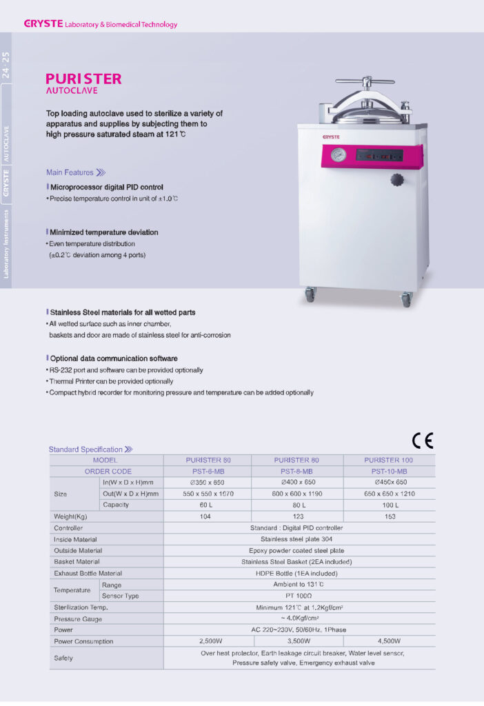 1. เป็นเครื่องนึ่งไอน้ำความดันสูงรูปทรงแนวตั้งมีความจุไม่น้อยกว่า 80 ลิตร