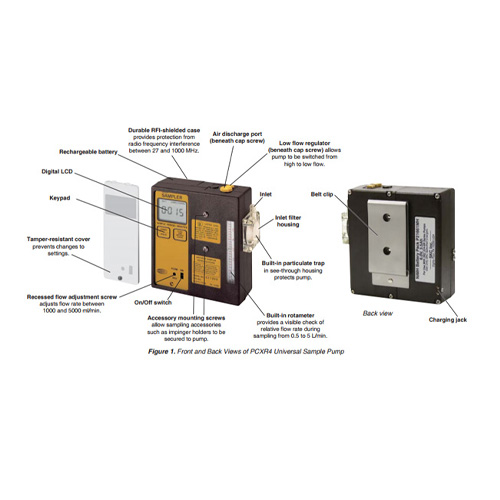 The Universal PCXR8 personal or area air sampling pump features a 5 to 5000 ml/min flow range, programmability, and up to 12-hour run time or extended intermittent sampling for particulates and gases/vapors. The pump is ideal for use with sorbent tubes, filter cassettes, size-selective samplers, sample bags, and impingers.