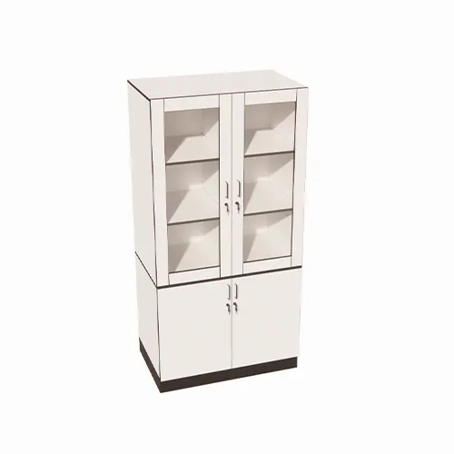 – หน้าบาน กระจกใสหนาไม่น้อยกว่า 5 มิลลิเมตร ในกรอบไม้ปาร์ติเกิลบอร์ด เคลือบผิวด้วยเมลามีน ด้านหน้าปิดผิวด้วยแผ่นลามิเนต (High Pressure Laminate) หนาไม่น้อยกว่า 0.8 มิลลิเมตร ปิดขอบ PVC