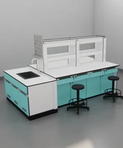 IB04-โต๊ะปฎิบัติการกลางพร้อมชั้นวางเเละอ่างล้าง