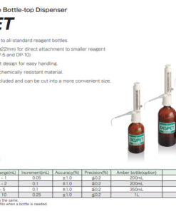 - เป็นอุปกรณ์ดูด-จ่าย สารละลายจากปากขวด ชนิดปรับปริมาตรได้ในช่วง 0.2-1 มิลลิลิตร ปรับปริมาตรได้ละเอียด 0.05 มิลลิลิตร