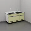 พื้นโต๊ะ (Bench Top) Chemical Resistant Compact Laminate (LAB GRADE) เป็นแผ่น Phenolic Resin ชนิด LAB GRADE ความหนาไม่น้อยกว่า 16 มิลลิเมตร สามารถทนความร้อนได้ 140 องศาเซลเซียส มีระบบ Water Drop Edge System เพื่อป้องกันการไหลย้อนกลับของน้ำและสารเคมีเข้าตัวตู้