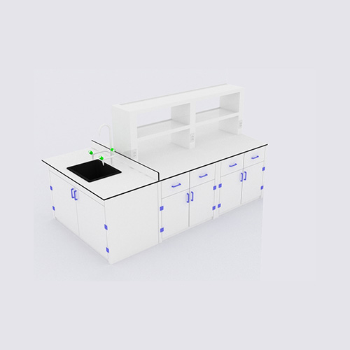โต๊ะปฎิบัติการกลางพร้อมชั้นวางและตู้อ่างน้ำ